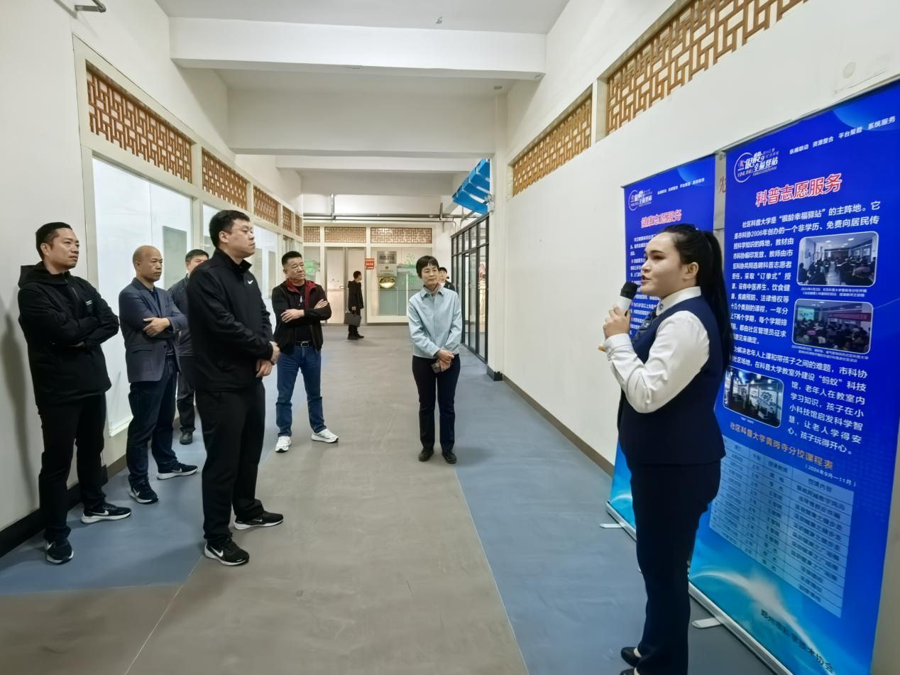 活动当天,韩玮一行实地察看项目建设情况,详细听取情况介绍,了解项目进展,分别参观了“银龄幸福驿站”主阵地社区科普大学多功能教室、全市首家社区科技馆——“银龄幸福驿站”“蚂蚁”科技馆、日间照料中心等。一路走,一路看,一路议,实地感受为民办实事项目给居民生活带来的便利和成效,从项目策划、工作机制、党员志愿服务等方面进行经验交流,对如何充分发挥党建引领作用,推动项目提质增效提出了宝贵建议。