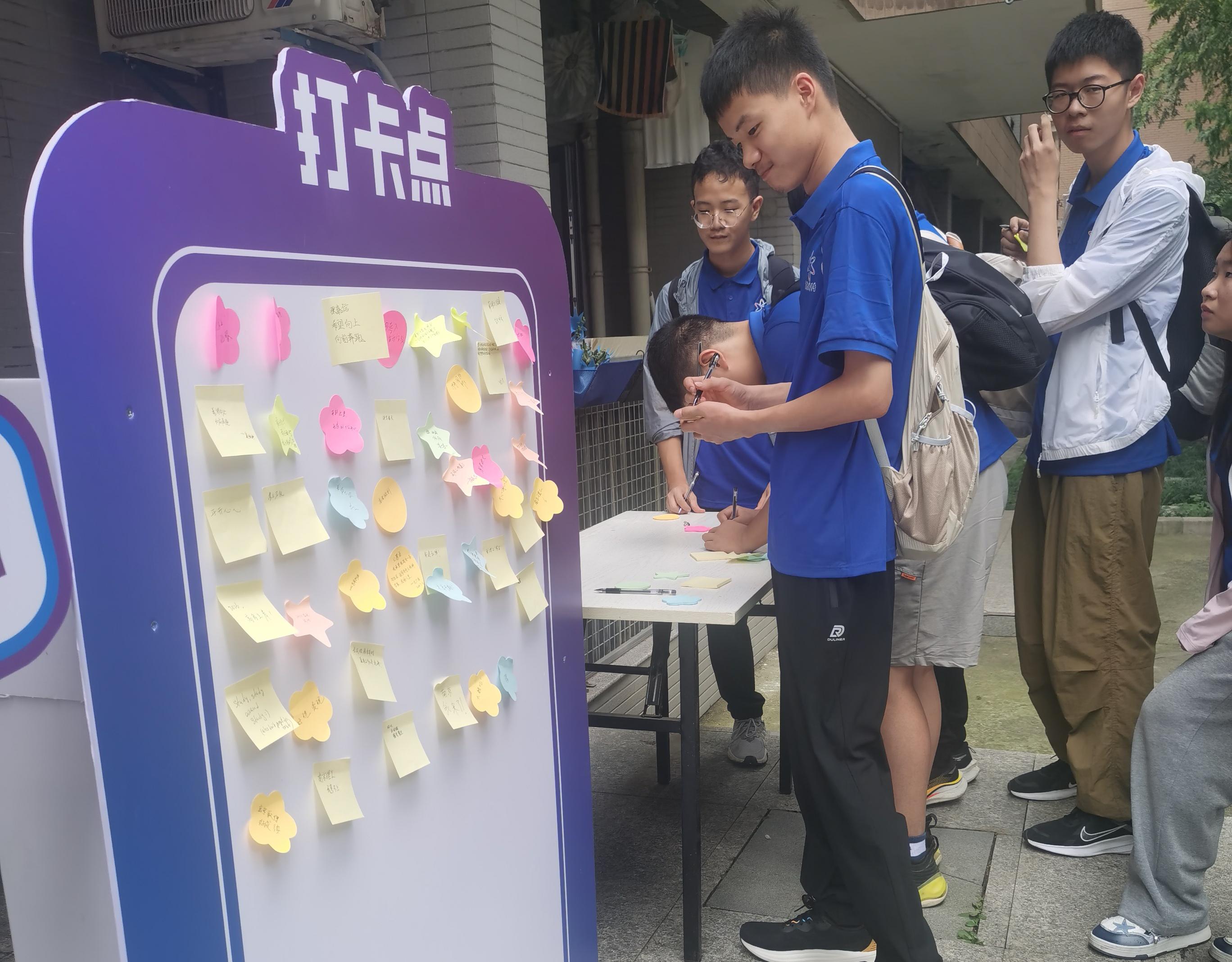 十一中的十余名师生到南京理工大学高校营报到后,师生们积极配合高校营各方面工作的开展,遵守规矩,严格自律,有序的组织领取学习资料和生活物资。并在打卡点写下了自己的小小心愿。