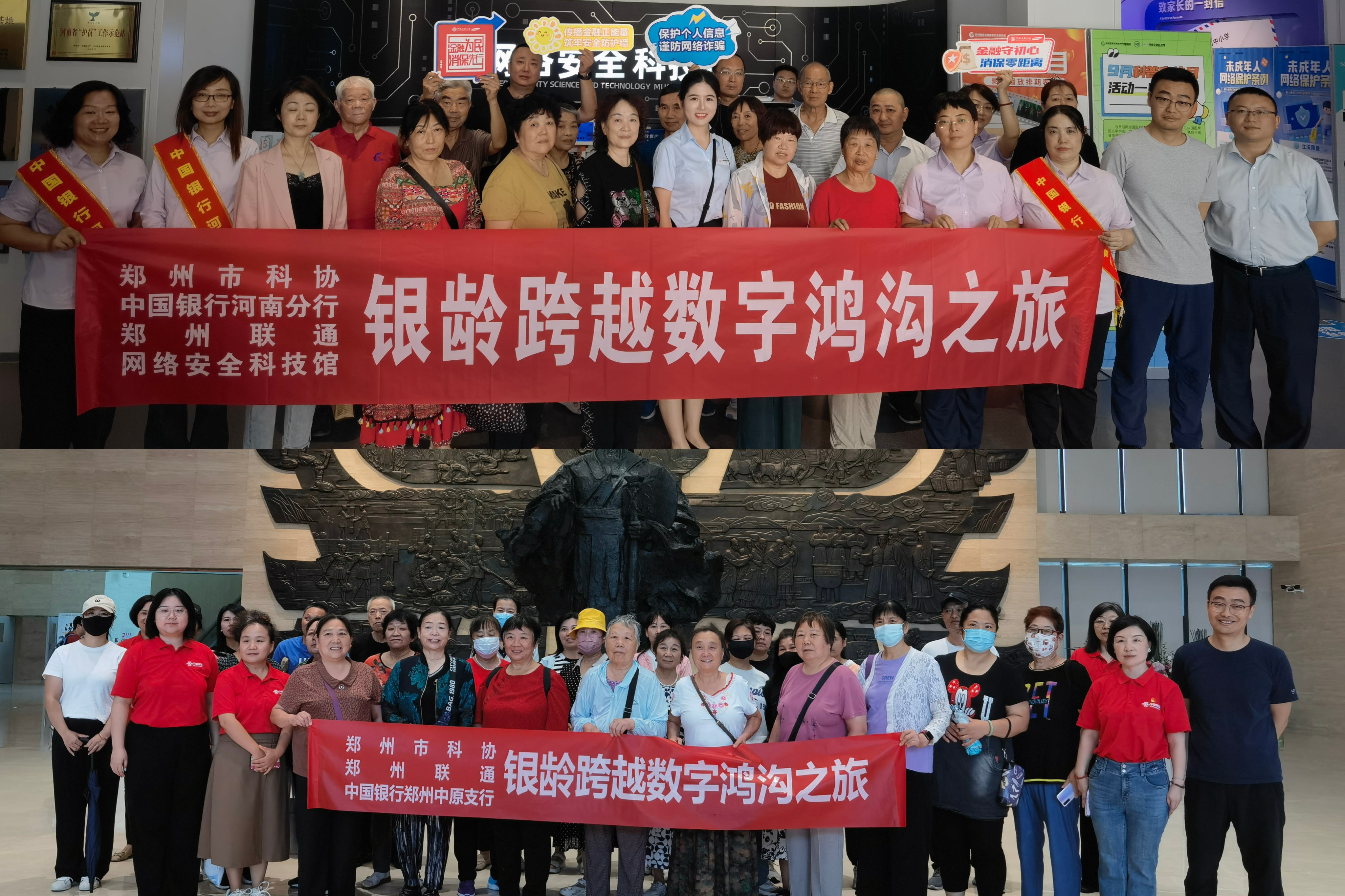 9月10-11日,连续两天,郑州乐发500联合中国银行河南分行、郑州联通组织50余名老年人先后到商都遗址博物院和网络安全科技馆开展银龄跨越数字鸿沟之旅活动。