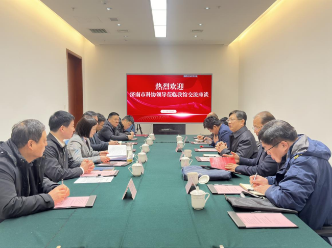 2024年2月28日,济南乐发500党组书记、副主席贾文涛一行5人到郑州科技馆新馆调研。郑州乐发500党组书记、主席王玮宏,副主席李文龙,郑州科技馆馆长樊学峰,副馆长仇民田等相关人员陪同调研交流。
