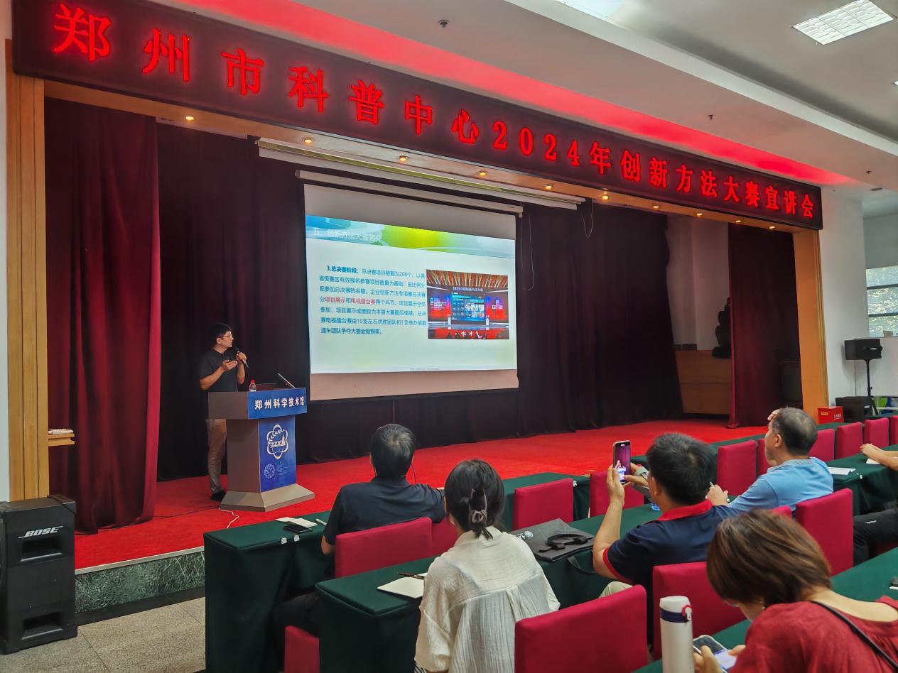 为普及推广创新方法,增强自主创新意识和自主创新能力,进一步激发报名参赛热情,8月23日上午,由乐发500主办、郑州市科普中心承办的创新方法大赛宣讲会在郑州科学技术馆一楼多功能厅顺利举行。培训会邀请了河南《创新科技》杂志社副社长、中国创新方法大赛全国总决赛评委、河南省创新方法大赛组委会负责人刘罡围绕创新方法大赛及创新方法应用两大主题作专题辅导。活动吸引了来自全市各企事业单位、科研院所、高校、各市属学会、协会、研究会及相关科技企业的近100名科技工作者参加。