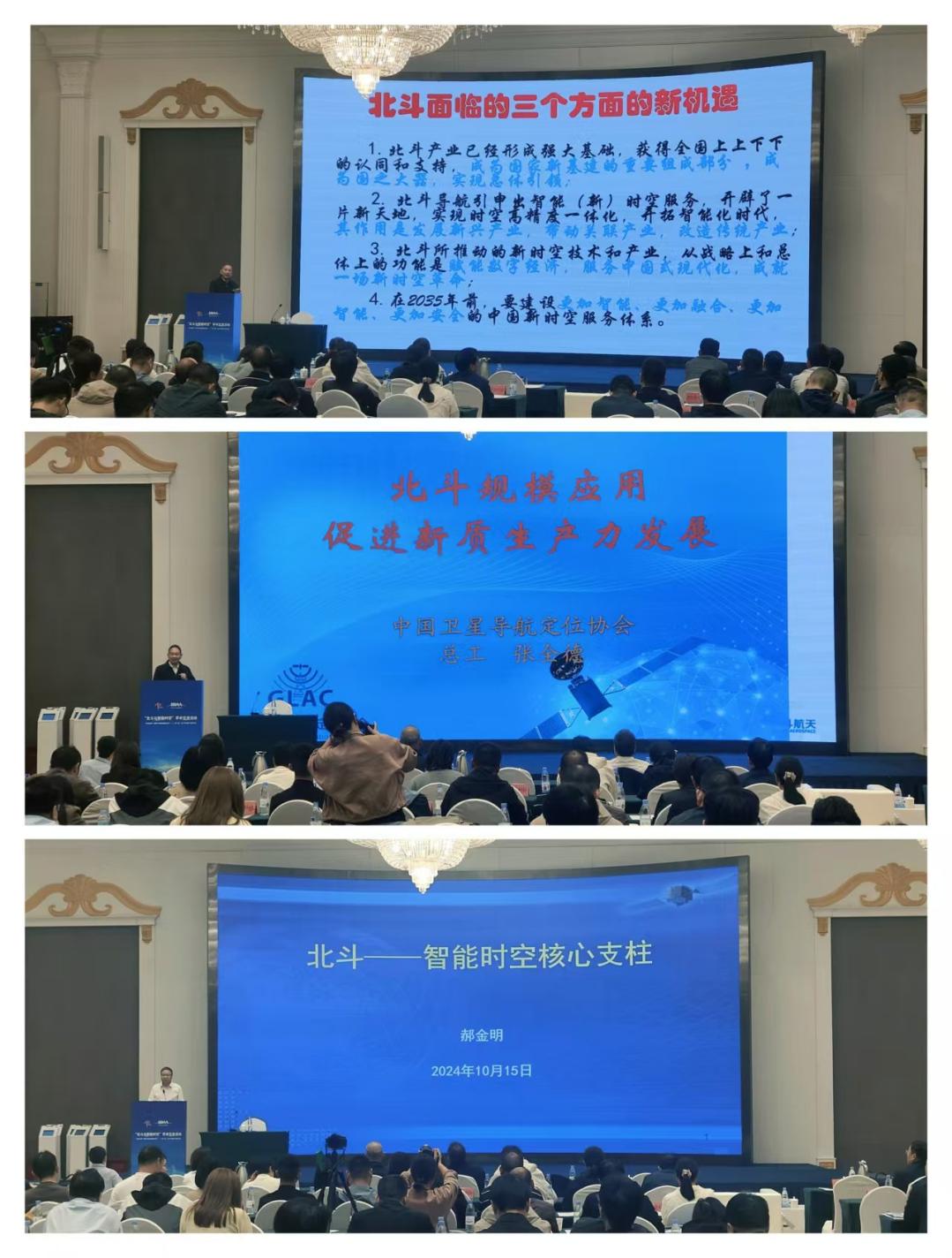 中国卫星导航定位协会首席科学家、中国第二代导航卫星系统专家委高级顾问曹冲,中国卫星导航定位协会总工程师张全德,原网络空间部队信息工程大学卫星导航工程学院副院长郝金明作了学术报告,三位专家分别以《北斗导航向中国时空跨越发展标志着什么?》、《北斗规模应用,促进新质生产力发展》、《北斗——智能时空核心支柱》为主题分享了北斗产业发展的最新理念和研究成果,从不同的角度和视野为我们带来了一场学术盛宴,体现了理论和实践的紧密结合以及科技工作者强烈的责任担当和改革创新精神。