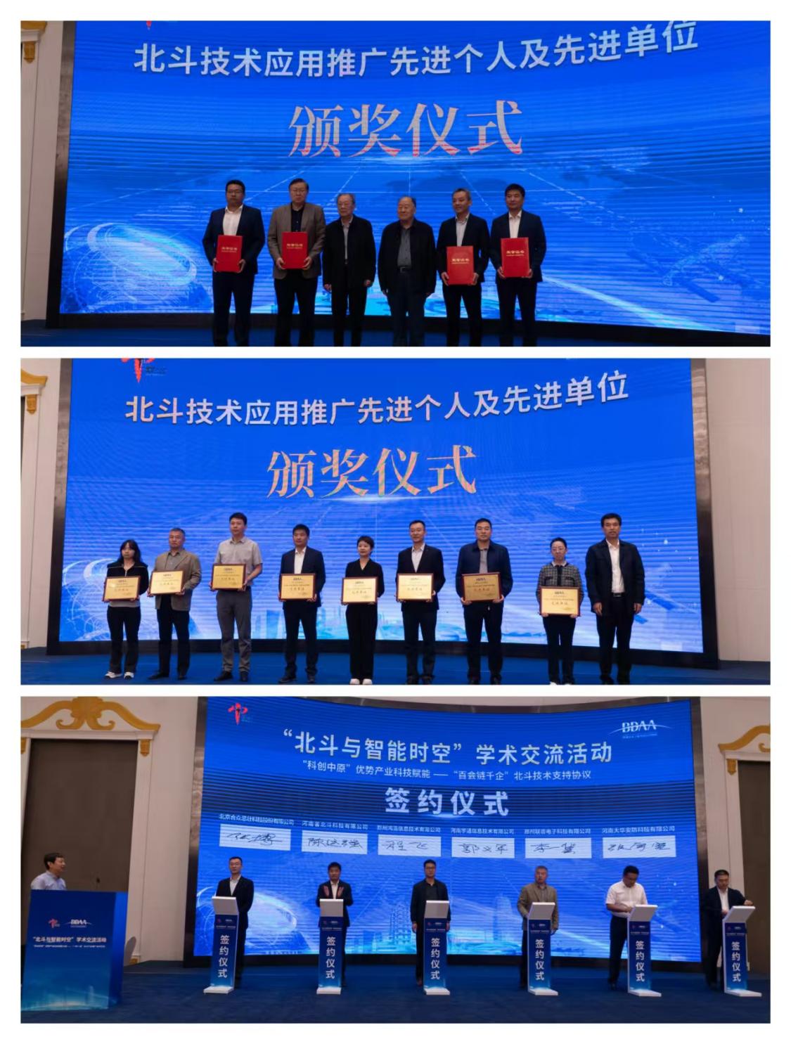 开幕式上,王家耀、魏子卿为4位“2023~2024年度北斗技术应用推广先进个人”颁发荣誉证书,陈立志为8家“2023~2024年度北斗技术应用推广先进单位”颁发了荣誉奖牌。随后,郑州市北斗卫星导航应用协会与6家会员企业代表签署了《北斗技术支持协议》,旨在通过协议的签订,加强学会与企业间的交流合作,开展有针对性的入企科技服务活动,促进科技成果转化,为企业发展赋能,推动北斗技术在更广泛领域的应用。