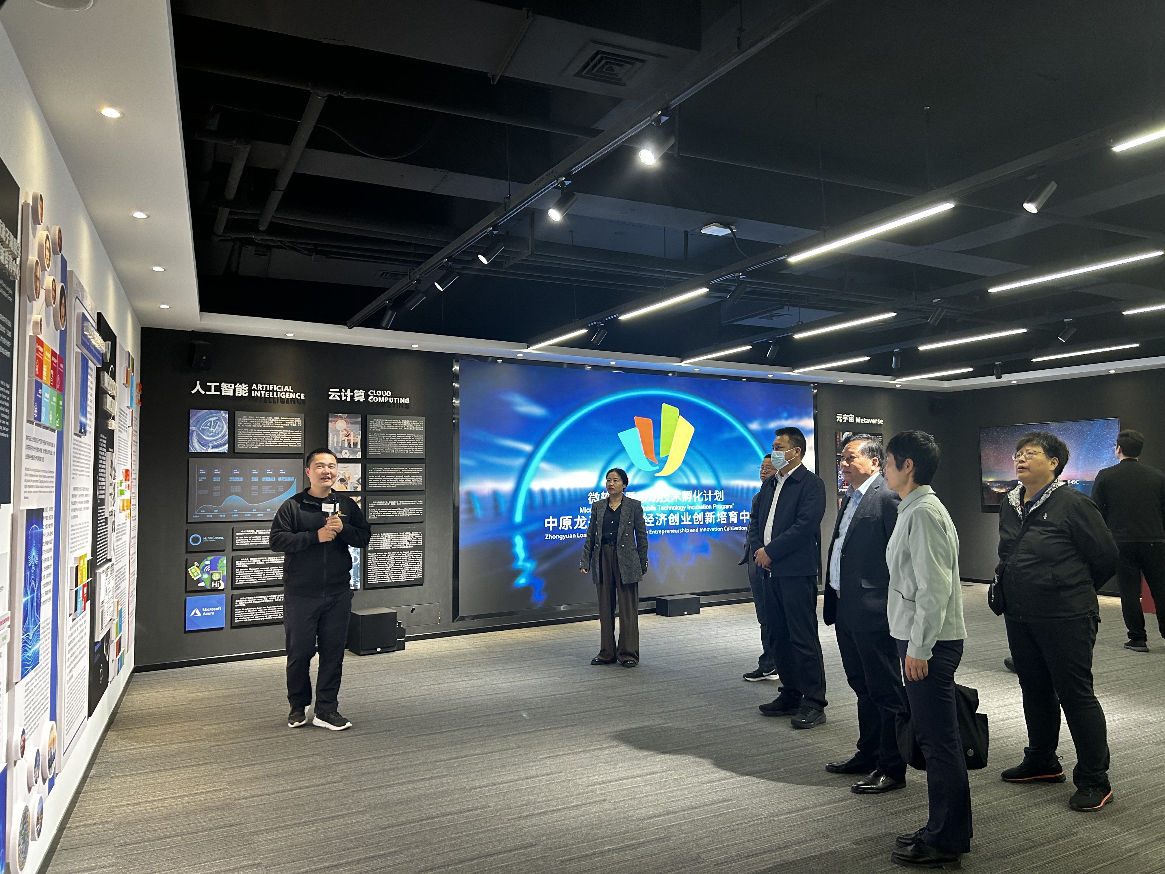 在中原龙子湖数字经济创业创新培育中心,大家参观了数字化展厅,了解了培育中心的成立背景、建设运营、微软“云暨移动技术孵化计划”以及推动原始创新、成果转化和产业集群无缝衔接等方面的工作,大家还体验了微软新型沉浸式MR混合现实等数字化设备。