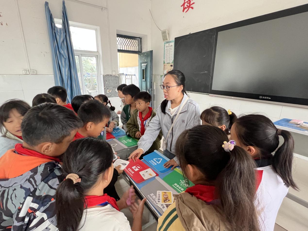 “环保小卫士接力挑战赛”聚焦垃圾分类知识普及。活动先以“科普小课堂”为载体,向学生详细讲解垃圾分类的重要意义及可回收物、厨余垃圾、有害垃圾、其他垃圾四大类别;随后的“垃圾投投乐”游戏环节,学生轮流抽取垃圾名称卡片,快速判断类别并投放到对应模拟垃圾桶中。面对“过期药品”“废旧电池”等易混淆垃圾,学生们热烈讨论、互相纠错,在趣味游戏中巩固分类知识,提升环保判断能力,让绿色环保理念深入人心。