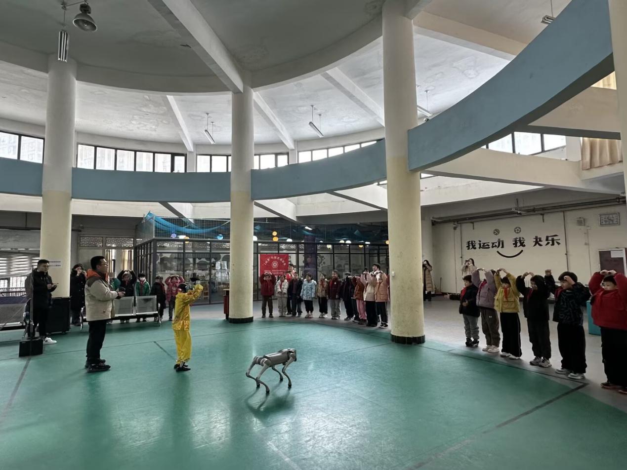 活动现场,智能机器人与机器狗的亮相瞬间点燃全场热情。在志愿者的指导下,机器狗迈着灵活的步伐巡游全场,时而点头摇尾、时而原地转圈,在接连完成后空翻、倒立行走等高难度动作时,引得孩子们发出阵阵惊叹。随着动感音乐响起,机器人随着音乐起舞,许多小朋友加入到与机器人的舞蹈互动中,亲身体验感受科技带来的乐趣。